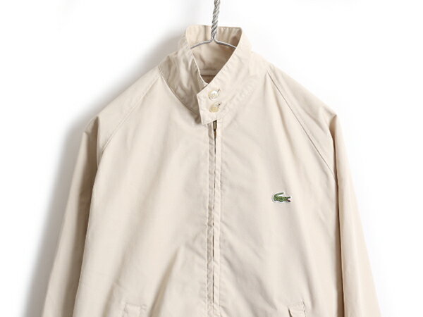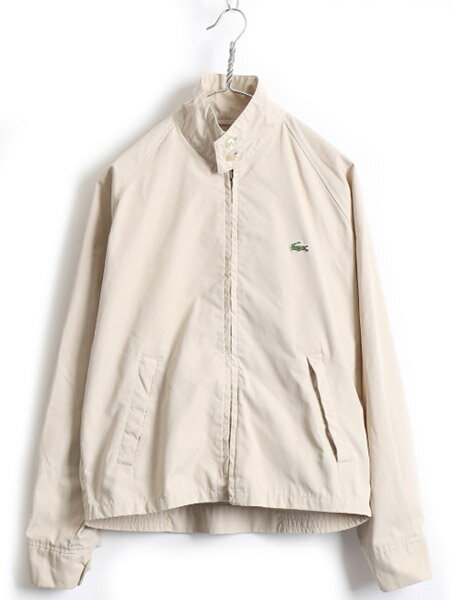 70's ビンテージ ■ ラコステ IZOD LACOSTE フルジップ コットン スイングトップ ジャケット ( メンズ 男性 M ) 古着 ジャンパー ベージュ| 中古 70年代 アウター コットンジャケット ワンポイント ワニ 刺繍 ジップアップ ハイネック ドッグイヤー ブルゾン 糸巻きタグ